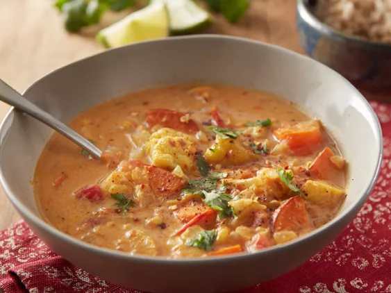 Roasted Cauliflower & Sweet Potato Curry Soup